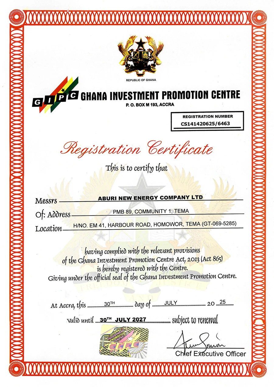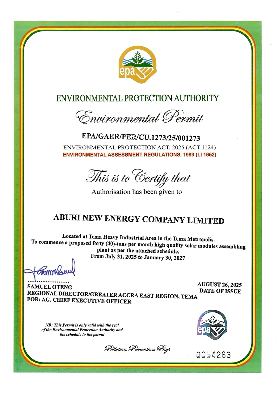 The company is located in Tema, Ghana, with a building area of 30,000 square meters and an annual production capacity of 3GW of solar photovoltaic cells. Of this capacity, 2GW utilizes TOPCON technology, while 1GW is based on PERC technology.